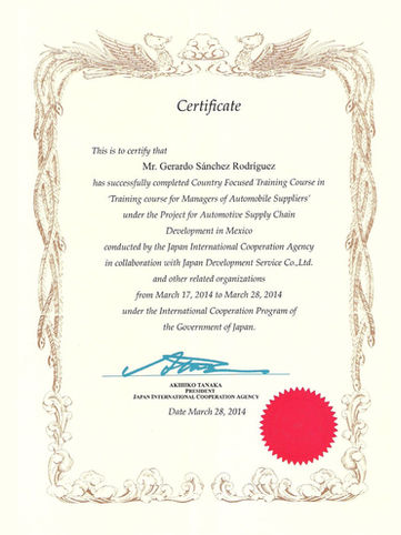 Empresa certificada bajo la norma ISO-9001-2015 desde el 27 de Octubre de 2009, Certificado VRQ-27-09-1107, Entrenamiento en Core Tools